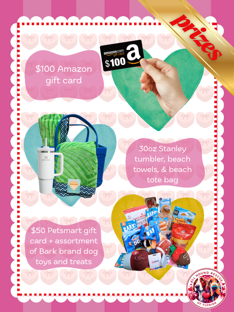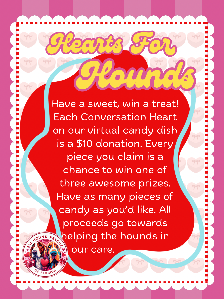 We hope you think our hounds are as sweet as we do, because all donations from “Hearts for Hounds” will go directly towards the medical care of our current crew.