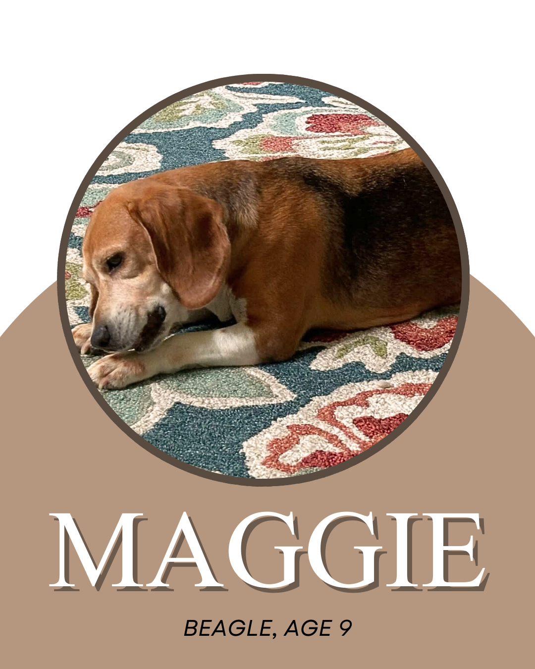 Meet Maggie, All Hound Rescue’s very first Legacy Foster. This sweet Beagle came to us from a severe hoarding case in Tallahassee, arriving thin, timid, and in need of gentle care. With time, love, and safety, Maggie reached a healthy weight and her true personality began to shine.