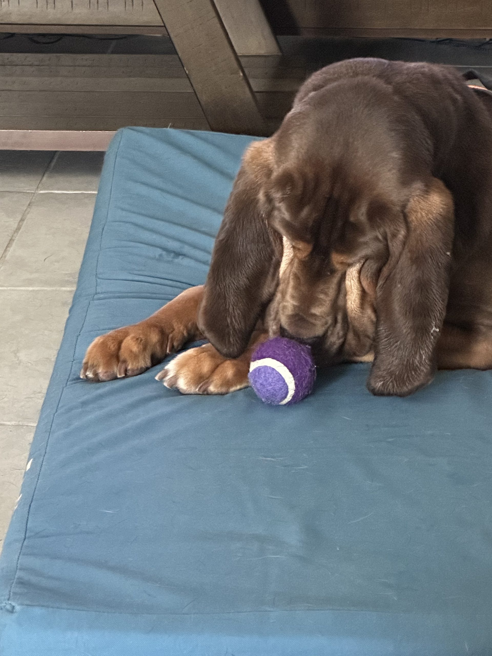 Max is a big, handsome Bloodhound with a striking liver-and-tan coat, the smooshiest angel face, and a heart overflowing with love. He joined us after his beloved human passed away, and now he’s looking for a soft place to land.