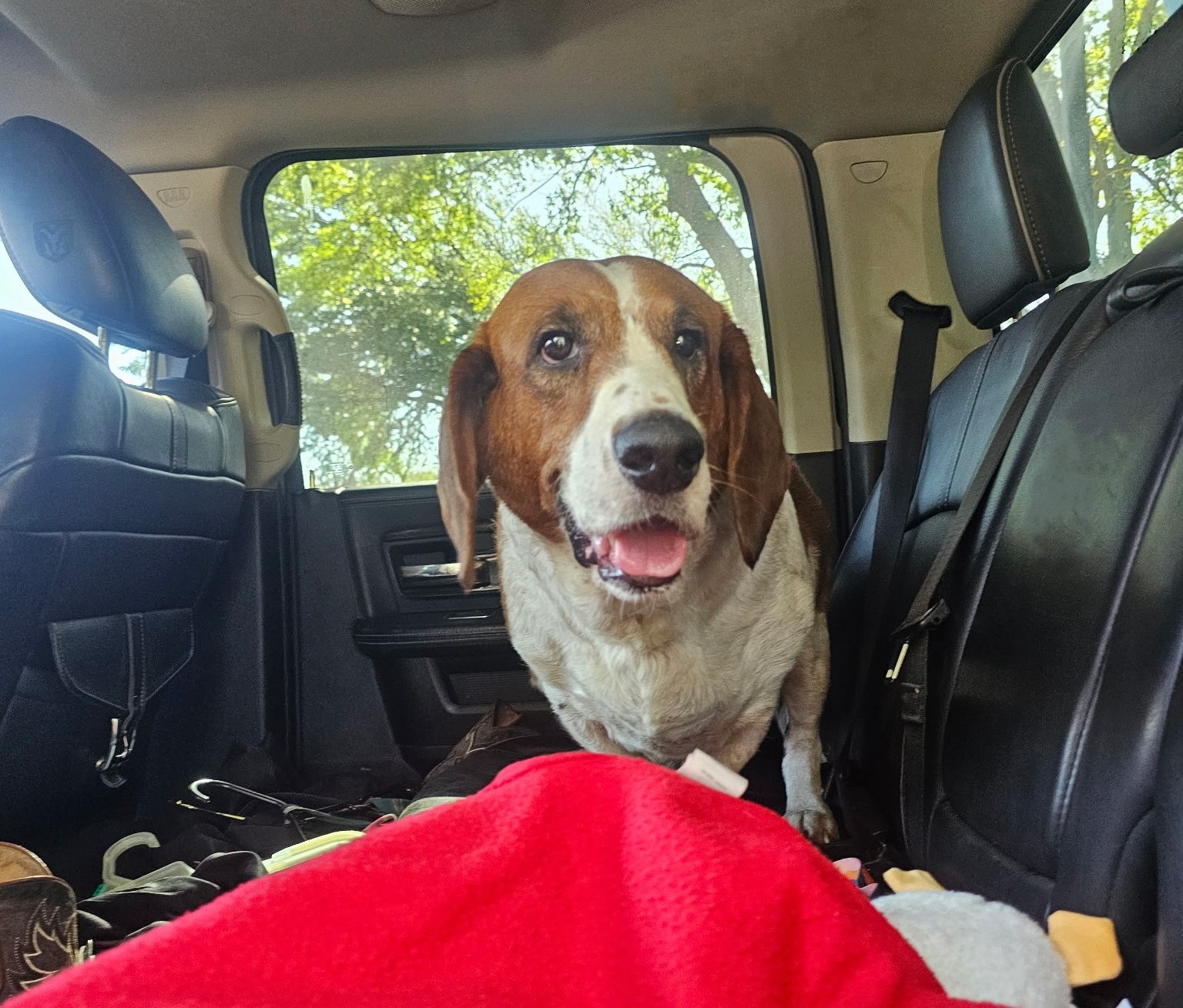 This is Pluto Potato. He’s around 7 years old and he’s a big sweet basset hound mix. He weighs in at around 75lbs, so we assume he’s mixed with a large breed, but maintains his floppy ears and short legs.