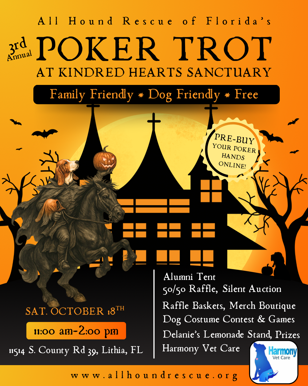 We’re thrilled to welcome Harmony Vet Care to this year’s Poker Trot! As a fellow non-profit dedicated to the well-being of animals, they’ll be offering on-site wellness checks for your furry companions and more.