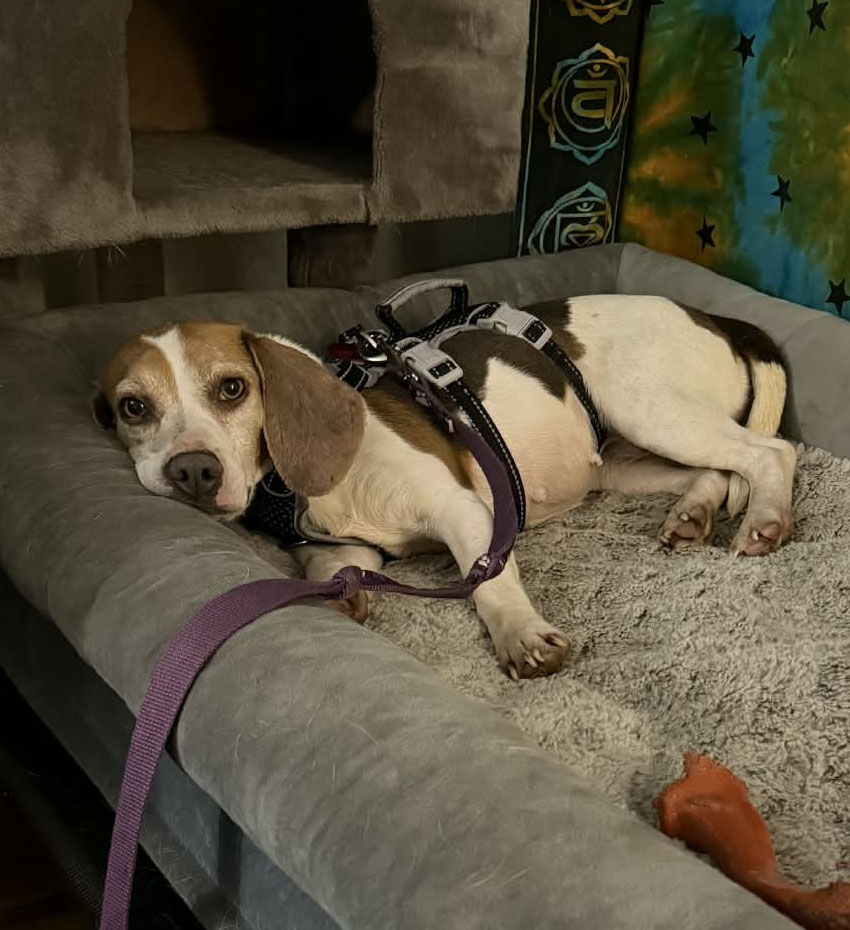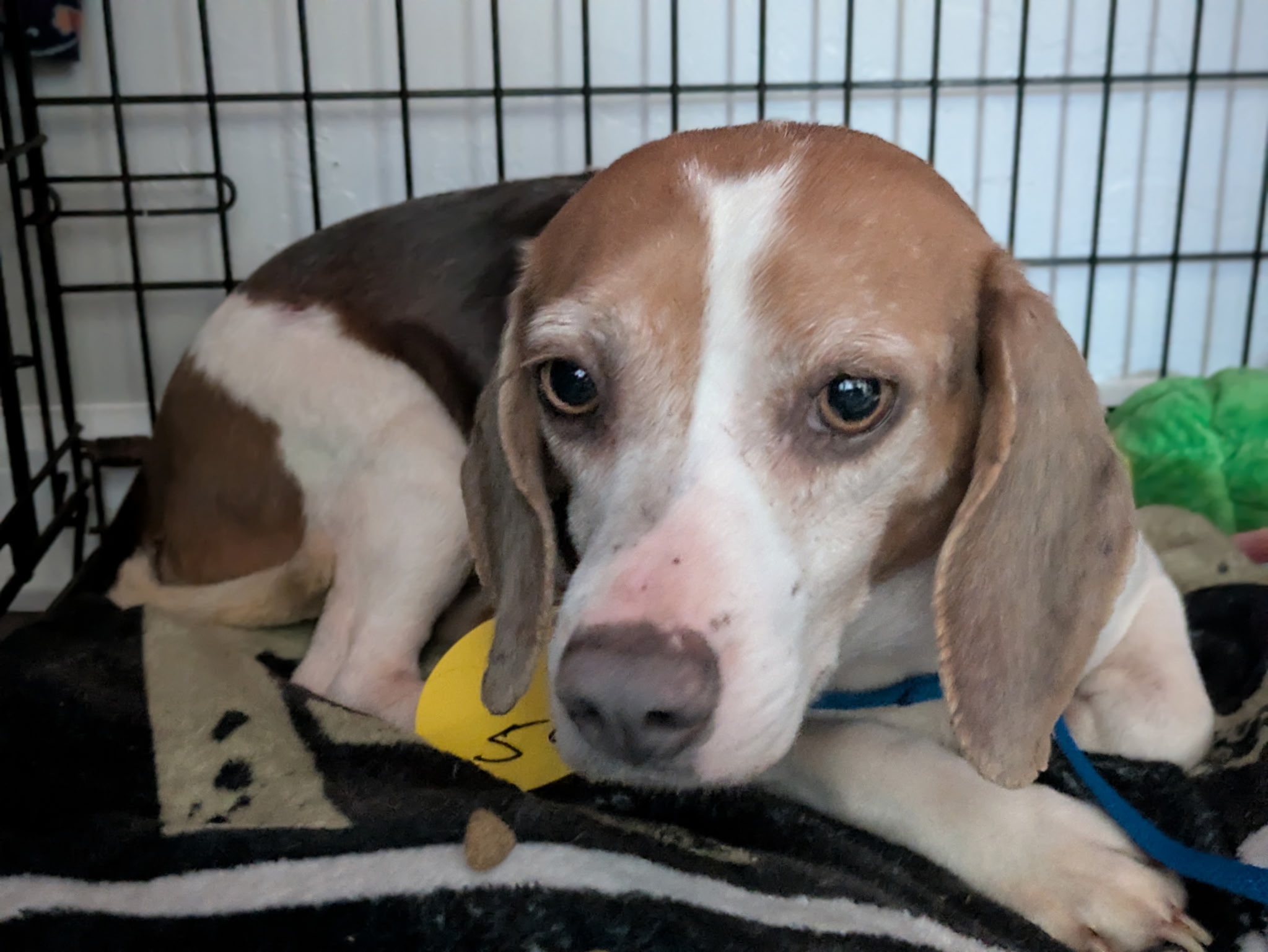 Stella Rose is a 5 year old, former breeder dog. She arrived timid and shut down. She is a tri-color beagle with a dilute coat and light honey eyes. Stella is currently with her incredible foster family who are allowing her to relax, decompress, and learn how to be a dog. Stella is not yet medically or socially ready for adoption, but when she is we will update this post with more information about her and our recommendations for an ideal adopter.